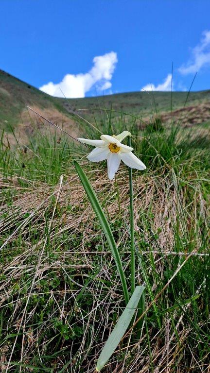 Po dobri uri so se tudi ostali vrnili z vrha, dali smo jim še čas za malico, nato pa smo se odpravili nazaj. Vreme se je slabšalo, ampak smo se kljub temu namenili proti sedlu Suha, da smo lahko občudovali travnike polne cvetočih narcis.