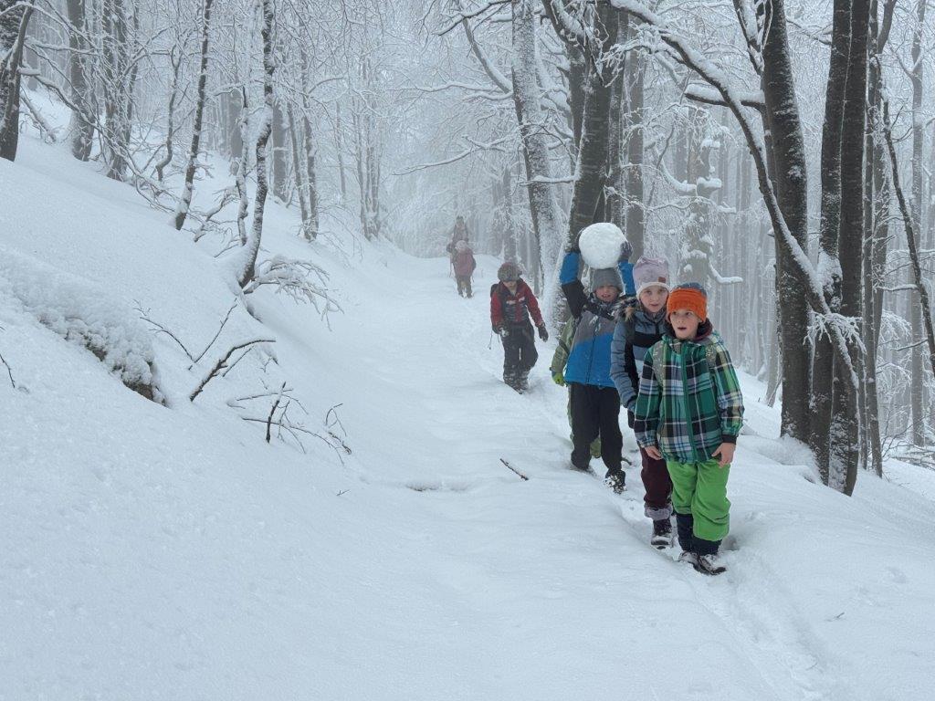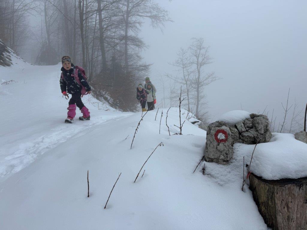 Po poti čez Prvo ravan smo uživali v zasneženi pokrajini in pogledom na zeleno Žetino pod nami. Na poti smo si privoščili prave zimske norčije. Ogledali smo si tudi bunkerje na poti.